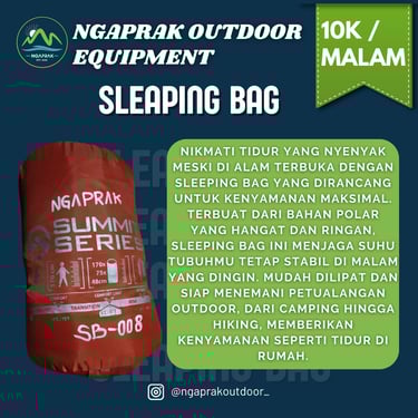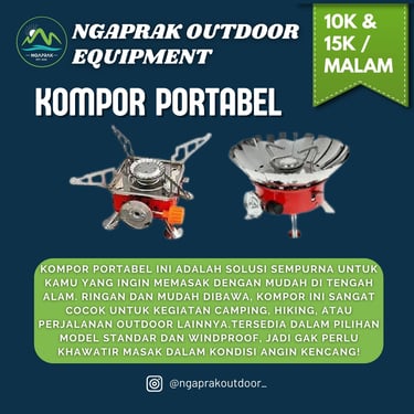 Ngaprak Outdoor Equipment adalah penyedia jasa penyewaan perlengkapan outdoor yang berlokasi di Desa Leuweungkolot, Kecamatan Cibungbulang, Kabupaten Bogor.