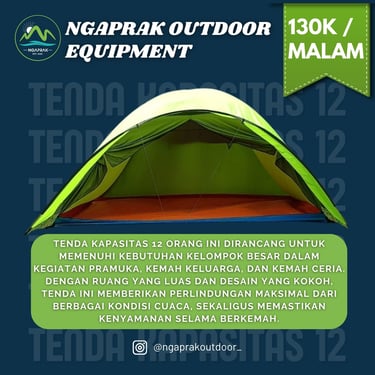 Dengan pengalaman melayani berbagai kegiatan seperti pendakian gunung, camping keluarga, jambore pramuka, LDKS sekolah, hingga kegiatan komunitas alam, Ngaprak Outdoor selalu memastikan setiap peralatan dalam kondisi bersih, terawat, dan siap pakai.